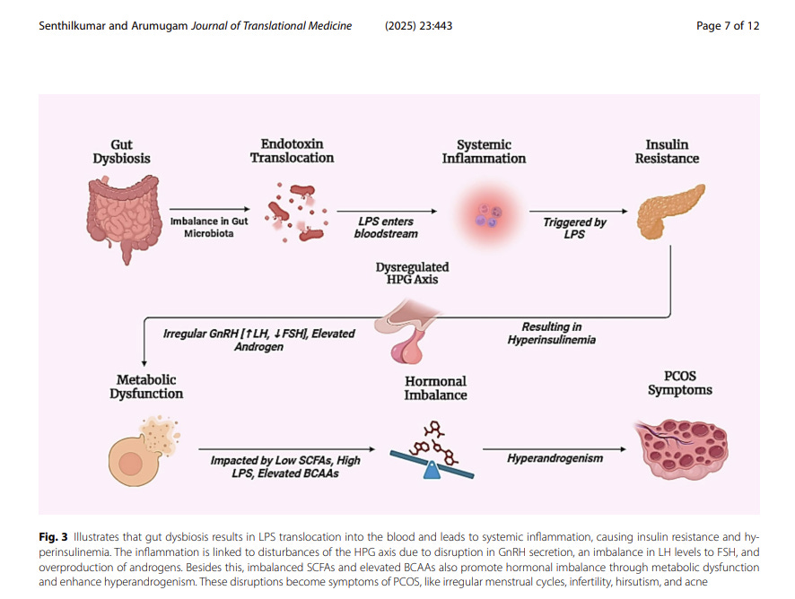 review of Senthilkumar H, Arumugam M. Gut microbiota: a hidden player in polycystic ovary syndrome. J Transl Med. 2025 Apr 15;23(1):443. doi: 10.1186/s12967-025-06315-7. PMID: 40234859; PMCID: PMC1199